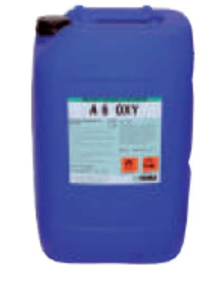 A6 OXY è un candeggiante sanificante a base di una speciale miscela di acidi ossidanti, con prevalenza di acido peracetico, formulato per la sanificazione di ogni tipo di biancheria in fibra vegetale e in misto sintetico, con particolare riferimento alla biancheria ospedaliera.